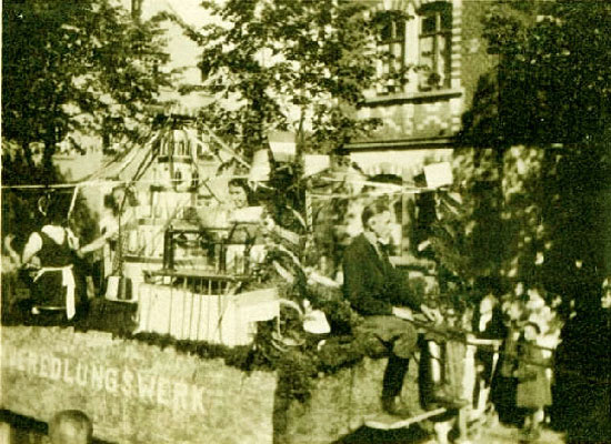 Impressionen vom Schulfest am 20. September 1948 junge „Spinnerrinnen” auf dem Wagen des Garnveredlungswerkes Auswahl Home
